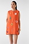 Orange Viscose Linen Hand Embroidered Shift Dress