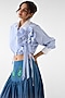 Sky Blue Poplin Stripe Printed Crop Shirt