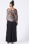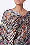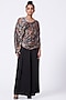 Featuring a multi colored hand-draped blouse in georgette satin base. It is paired with contrasting black wide-legged pants having inverted pleats.
