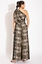 Featuring an olive green one-shoulder jumpsuit in georgette satin base with a hand-draped bodice and contrasting piping detail.