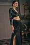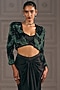 Featuring a black and emerald green cropped jacket in satin base. It is paired with an inner and a draped skirt having a slit. Accentuate it with zircon jewellery and block heels for festive celebrations or cocktail soirees.