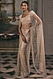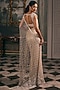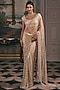 Featuring a champagne pre-stitched saree in net and shantoon base with sequins and beads hand embroidery. It is paired with an embroidered blouse. Accentuate it with zircon jewellery and block heels for festive celebrations, sangeet or cocktail soirees.