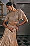 Featuring a champagne lehenga in net and shimmer base with hand embroidery. It is paired with an embroidered blouse. Accentuate it with statement earrings and heels for a graceful look, perfect for a wedding, engagement or sangeet ceremony.