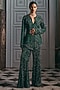 Featuring an emerald green top in net and satin blend base with hand embroidery. It is paired with flared pants. Accentuate it with zircon jewellery and block heels for festive celebrations or cocktail soirees.