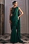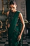 Featuring an emerald green skirt saree in satin blend base with an attached drape. It is paired with a blouse. Accentuate it with zircon jewellery and block heels for festive celebrations, mehendi or cocktail soirees.