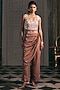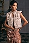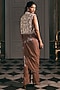 Featuring a mocha brown jacket in georgette base with thread embroidery. It is paired with an embroidered blouse and draped pants. Accentuate it with zircon jewellery and block heels for festive celebrations or cocktail soirees.