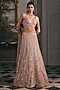 Featuring a blush pink lehenga in net and shimmer base with hand embroidery. It is paired with an embroidered blouse and a dupatta. Accentuate it with statement earrings and heels for a graceful look, perfect for a wedding, engagement or sangeet ceremony.