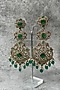Black Rhodium Finish Zircon & Green Stone Beaded Long Earrings