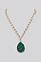 Gold Finish Green Stone Link Chain Necklace