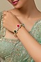 Featuring a gold finish openable bracelet studded with multi-colored gemstones and zircons, set in brass. Perfect for grand occasions like weddings and traditional festivities.