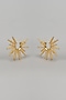 Gold Finish Textured Sun Ray Stud Earrings