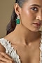 Featuring a pair of white finish dangler earrings studded with green zircons, set in mixed metal. Perfect for day parties, brunches, summer weddings, festive gatherings, vacations, or casual celebrations.