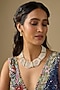 Featuring a white finish choker necklace studded with pearls and kundan polki, set in mixed metal. It is paired with a pair of earrings. Ideal for adding a regal touch to wedding celebrations, festive soirees or grand receptions.