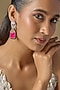 Featuring a pair of white finish black enameled dangler earrings studded with pink stones and zircons, set in mixed metal. Perfect for day parties, brunches, summer weddings, festive gatherings, vacations, or casual celebrations.