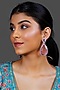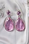 White Finish Pink Synthetic Stone Tear Drop Dangler Earrings
