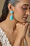 White Finish Turquoise Stone & Zircon Dangler Earrings