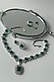Featuring a white finish long necklace studded with zircons and green stones, set in mixed metal. It is paired with a matching pair of earrings. Perfect for festive occasions or wedding ceremonies.