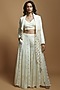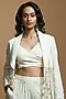 Ivory Crepe & Georgette Embroidered High-Low Flared Blazer Jacket