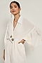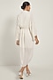Featuring an ivory wrap dress in moss crepe base with drop shoulder sleeves and fringe detailing.