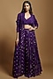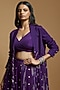 Purple Crepe & Georgette Embroidered High-Low Blazer Jacket