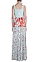 Featuring a blue gown in cotton silk and chiffon base with gathered tiers, print including pearl and anchor thread hand embroidery.