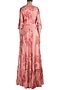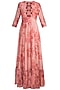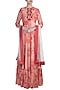 Featuring a pink gown in chiffon and silk chanderi base with print, ruffled border including anchor thread, pearl and sequins hand embroidered. It is paired with a contrasting dupatta.