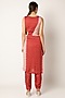 Featuring a red twisted kurta in dola silk and georgette satin base with sequins embroidery and digital print. It is paired with matching pants.