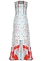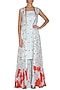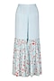 Featuring a sky blue kurta in cotton silk base with resham, pearl and butti embroidery. It is paired with matching sharara pant and jacket in chinon chiffon base having leaf print.