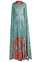 Featuring a teal green high neck gown in chiffon base with panelled ghera, long sleeves including french knots, beads and anchor threads hand embroidery on the neck.