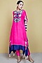 Featuring a deep pink kurta in silk base with floral applique butti embroidery. It is paired with matching pants.