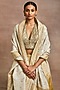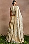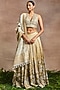 Featuring a golden yellow handcrafted lehenga in handwoven silk tissue base with hand embroidery. It is paired with a blouse and a beige hand woven banarasi dupatta. Accentuate this lehenga set with ethnic dangler earrings and block heels for a bridal look.