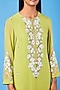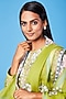 Featuring a green kurta in georgette base with aari machine embroidery. It is paired with matching pants and an organza dupatta.