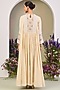 Featuring a light yellow long anarkali in handwoven chanderi mulmul base with floral motifs, sequins, beads, piping, lace and silk thread aari embroidery. It is paired with handwoven silk chanderi stripe doria loose-fit pants and a handwoven silk chanderi satin stripe dupatta. Accentuate it with statement earrings and heels for a festive occasion or wedding ceremony.
