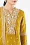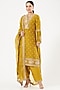 Featuring a mustard kurta in silk base with zari motif embroidery. It is paired with matching salwar pants and an organza dupatta.