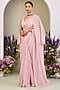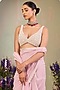 Featuring a pastel pink saree in handwoven silk chanderi stripe doria base with floral motifs, pearl, applique, silk thread and pitta embroidery. It is paired with a sleeveless blouse and a pure silk organza jacket. Accentuate it with jewellery and heels for wedding ceremonies.