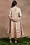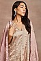 Featuring a peach kalidar kurta in handwoven silk tissue base with silk thread, dori, sequins and patchwork hand embroidery. It is paired with multi-colored banarasi brocade pants and a shaded cotton tissue dupatta. Accentuate this kurta set with ethnic dangler earrings and heels for a festive occasion or a pooja ceremony.
