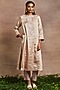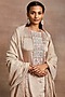 Featuring a peach kurta in handwoven silk tissue base with golden dori and sequins hand embroidery. It is paired with pink banarasi brocade trousers and a cotton tissue dupatta. Accentuate this kurta set with ethnic dangler earrings and heels for a festive occasion or a pooja ceremony.