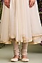 Featuring a white and beige long anarkali in handwoven silk chanderi stripe doria base with floral motifs, silk threads, sequins, aari, zari, beads, mirror and dabka work. It is paired with pure lycra crepe churidar pants and a pure silk organza dupatta. Accentuate it with jewellery and heels for wedding ceremonies.