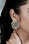 Featuring a pair of 22kt gold plated handcrafted circular arc earrings with cyan blue acrylic work, set in copper. Accessorise it with elegant ethnic or fusion ensembles for a statement look, ideal for festive soirees or wedding celebrations.