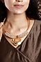 Featuring a 22kt gold plated handcrafted collar necklace studded with imitation pearls and buttercup motifs, set in copper. Accessorise it with elegant ethnic or fusion ensembles for a statement look, ideal for festive soirees or wedding celebrations.