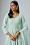 Featuring an aqua anarkali in organza base with dori work. It is paired with a pleated lehenga and a dupatta. Accessorise it with pearl chandbalis, a dainty maang tikka and heels for a stylish ensemble, ideal for engagement ceremonies or festive gatherings.