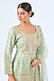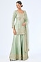 Featuring an aqua kurta in slub silk base with mirror work, zari and gota embroidery. It is paired with embroidered sharara pants and a net dupatta. Accentuate it with dangle earrings and heels for a festive occasion or sangeet ceremony.