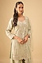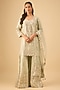 Featuring an aqua kurta in tissue base with zari, gota, leather and mirror embroidery. It is paired with tissue sharara pants and a net dupatta. Accentuate with statement earrings and heels for a festive occasion or wedding ceremony.