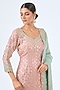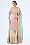 Featuring a pink and blue kurta in tissue silk base with mirror work, zari and patch embroidery. It is paired with embroidered sharara pants and an organza dupatta. Accentuate it with dangle earrings and heels for a festive occasion or sangeet ceremony.