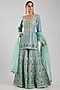 Featuring a blue kurta in tissue base with mirror work and zari embroidery. It is paired with embroidered gharara pants and an organza dupatta. Accentuate with statement jewellery and heels for a wedding or sangeet ceremony.