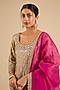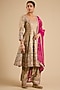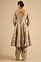 Featuring a champagne anarkali in slub base with mirror work and patch embroidery. It is paired with salwar and a dupatta. Accentuate it with statement earrings, a sleek braid, and metallic heels, ideal for engagement ceremonies or weddings.