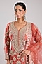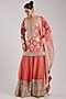 Featuring a coral kurta in tissue base with gota and mirror work. It is paired with embroidered sharara pants and a net dupatta. Accentuate with statement jewellery and heels for a wedding or sangeet ceremony.