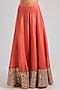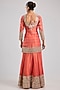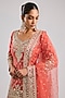 Featuring a coral kurta in tissue base with gota and mirror embroidery. It is paired with embroidered sharara pants and a net dupatta. Accentuate it with kundan polki or zircon jewellery and block heels for a sangeet, wedding or engagement ceremony.