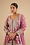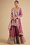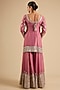 Featuring a coral kurta in tissue base with mirror work. It is paired with an embroidered sharara and a dupatta. Accentuate it with polki jewellery and block heels for festive occasions, sangeet or wedding ceremony.