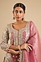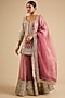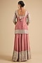 Featuring a coral kurta in tissue base with mirror work. It is paired with an embroidered sharara and a dupatta. Accentuate it with polki jewellery and block heels for festive occasions, sangeet or wedding ceremony.
